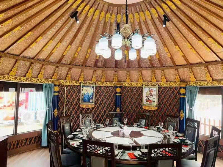 隨著時(shí)代的發(fā)展蒙古包逐漸的被商業(yè)化,比如蒙古包餐飲,蒙古包燒烤,蒙古包農(nóng)家樂等,都可以很好的體現(xiàn)我們鑫鋒受到很多商業(yè)人士喜好。豪華蒙古包工藝上采用蒙古包骨架全部木質(zhì)結(jié)構(gòu),附有雕刻工藝,堅(jiān)固耐用,拆裝靈活,外形美觀大方,防寒套采用純毛毛氈和丙綸防雨套用維綸有機(jī)硅高級(jí)防水帆布制作,不但具有防腐、防雨性能,而且對(duì)骨架和防寒氈具有保護(hù)作用,產(chǎn)品既保留傳統(tǒng)民族文化特色,又具有時(shí)尚因素。