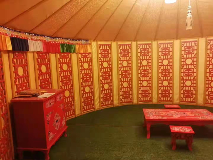 隨著時代的發(fā)展蒙古包逐漸的被商業(yè)化,比如蒙古包餐飲,蒙古包燒烤,蒙古包農(nóng)家樂等,都可以很好的體現(xiàn)我們鑫鋒受到很多商業(yè)人士喜好。豪華蒙古包工藝上采用蒙古包骨架全部木質(zhì)結(jié)構(gòu),附有雕刻工藝,堅固耐用,拆裝靈活,外形美觀大方,防寒套采用純毛毛氈和丙綸防雨套用維綸有機硅高級防水帆布制作,不但具有防腐、防雨性能,而且對骨架和防寒氈具有保護作用,產(chǎn)品既保留傳統(tǒng)民族文化特色,又具有時尚因素。