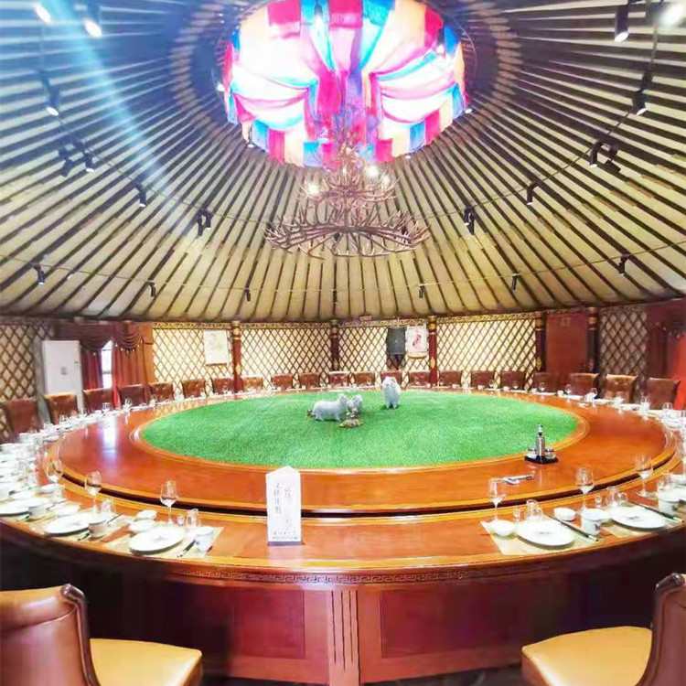 隨著時(shí)代的發(fā)展蒙古包逐漸的被商業(yè)化,比如蒙古包餐飲,蒙古包燒烤,蒙古包農(nóng)家樂等,都可以很好的體現(xiàn)我們鑫鋒受到很多商業(yè)人士喜好。豪華蒙古包工藝上采用蒙古包骨架全部木質(zhì)結(jié)構(gòu),附有雕刻工藝,堅(jiān)固耐用,拆裝靈活,外形美觀大方,防寒套采用純毛毛氈和丙綸防雨套用維綸有機(jī)硅高級(jí)防水帆布制作,不但具有防腐、防雨性能,而且對(duì)骨架和防寒氈具有保護(hù)作用,產(chǎn)品既保留傳統(tǒng)民族文化特色,又具有時(shí)尚因素。