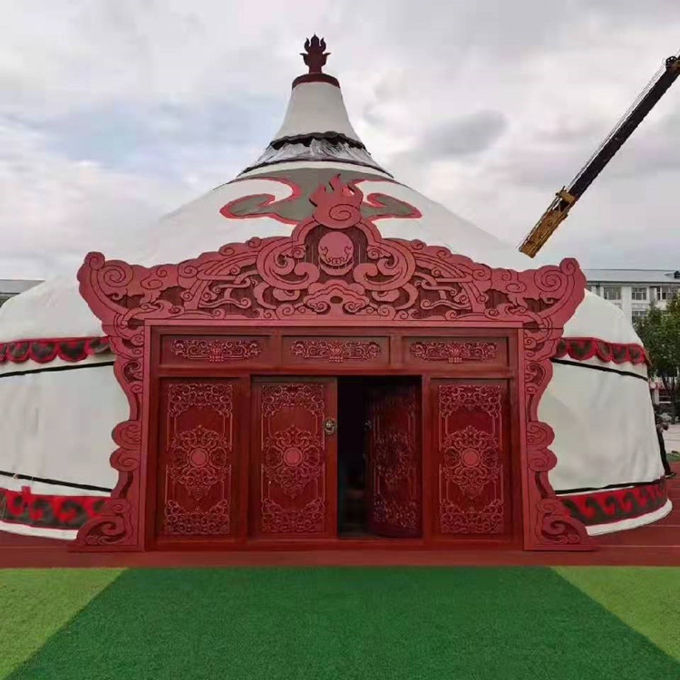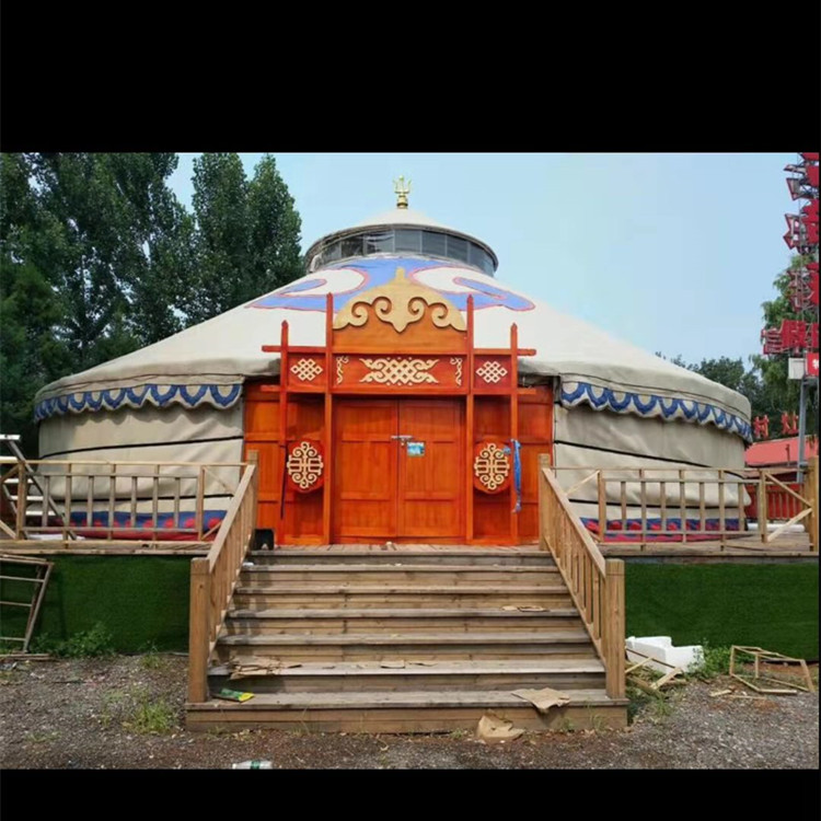 隨著時(shí)代的發(fā)展蒙古包逐漸的被商業(yè)化,比如蒙古包餐飲,蒙古包燒烤,蒙古包農(nóng)家樂等,都可以很好的體現(xiàn)我們鑫鋒受到很多商業(yè)人士喜好。豪華蒙古包工藝上采用蒙古包骨架全部木質(zhì)結(jié)構(gòu),附有雕刻工藝,堅(jiān)固耐用,拆裝靈活,外形美觀大方,防寒套采用純毛毛氈和丙綸防雨套用維綸有機(jī)硅高級防水帆布制作,不但具有防腐、防雨性能,而且對骨架和防寒氈具有保護(hù)作用,產(chǎn)品既保留傳統(tǒng)民族文化特色,又具有時(shí)尚因素。